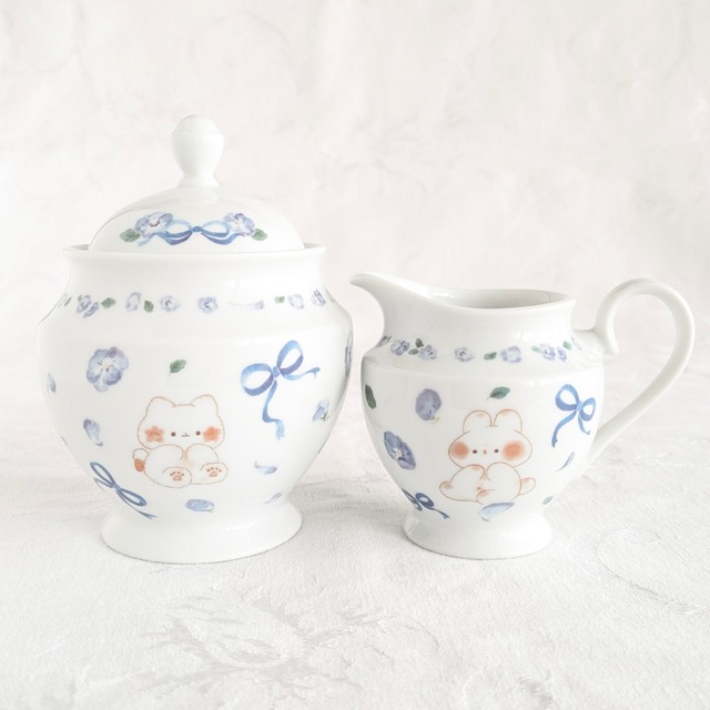 ももぽわとビオラのシュガーポット&クリーマーセット